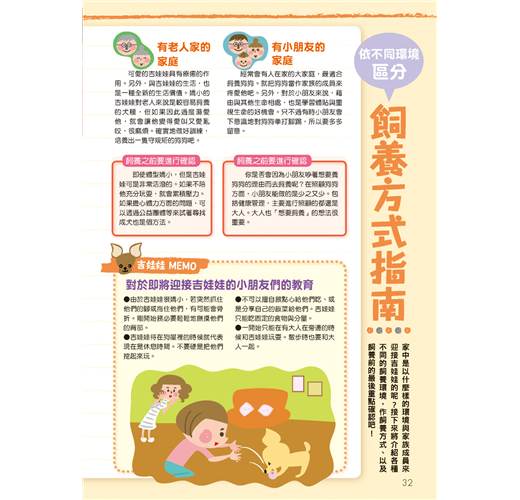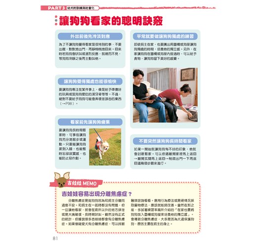 4.特別針對吉娃娃與各種不同的家庭構成提出相對的飼育建議,以及健康管理的基礎知識,實用度滿分。