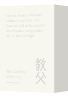 「《教父》已然成為美國文化的一部分了,還有成為影史里程碑的《教父》電影三部曲。《教父》是一部史詩,關於家族、忠誠,以及這些「重視榮譽的人」如何在他們自己的世界裡生存,然後又如何死於他們自己的律法。喚醒你內心的「閣下」吧!」