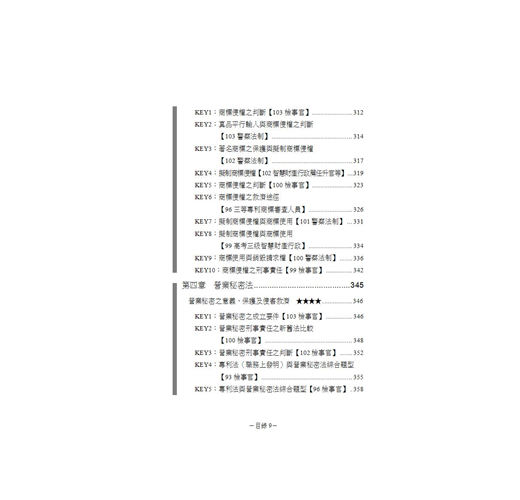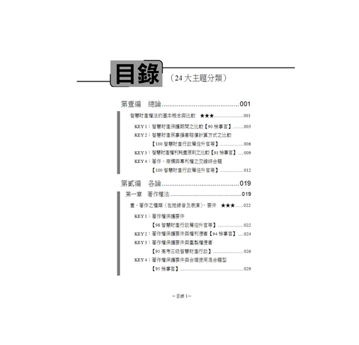 因此,不要懷疑,不管你是要考律師(選試智財)、高普考、檢察事務官,本書將會是你解題書的首選,走過路過,千萬不要錯過,趕緊翻開本書,讓我們一同體驗智慧財產的魅力吧!