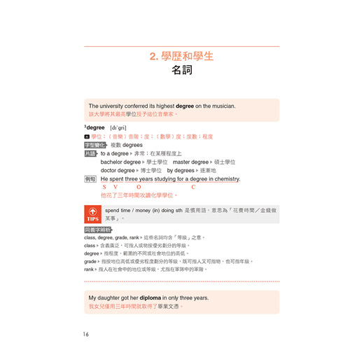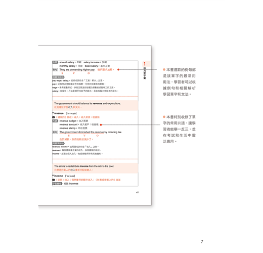 包含792個單字+8000個相關單字的清楚定義,本書還提供同義字辨析,像是rise這個單字下,就比較rise、arise、raise、lift的差異,幫助讀者一次清楚理解一組單字。