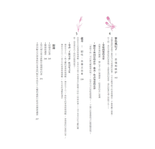 傳奇女子之一‧姚玉蘭的愛情與婚姻觀/傳奇女子之二‧林桂生的愛情與婚姻觀/愛情裡的自尊與自卑/傳奇女子之三‧孟小冬的愛情與婚姻觀/杜月笙的遺憾和遺言