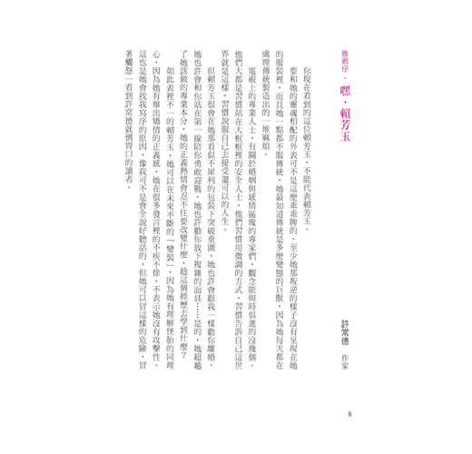 「她最知道傳統是多麼變態的巨獸,因為她每天都在處理傳統製造出的一堆麻煩。」──許常德