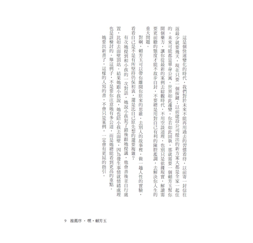 因循內心對正義的渴望面對案件、運用無可救藥的同理心救援個案,喜歡用說和寫倡導自己的理念,用學不來的世故、愛哭愛笑愛玩的赤子之心,讓自己越挫越勇、越哭越堅持,22年歷經數不清的悲劇,但她依然相信自己、相信自己所相信的價值與美好。