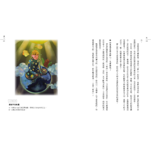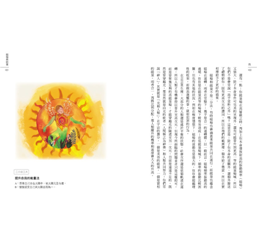 本書有來自上天的三十八則訊息,每一則都帶著滿滿的能量與愛,提供現代人生活與心靈融合的契機;搭配一則一則容易上手的【三分鐘工具】操作法,讓你的心靈之旅落實,讓你從內到外滌淨一番,有著煥然一新的喜悅;每個實用工具再搭配上彩色插畫,除了說明操作手法,還可給你更多的啟發。這是一本承載著光與能量的、美麗的靈性之書。