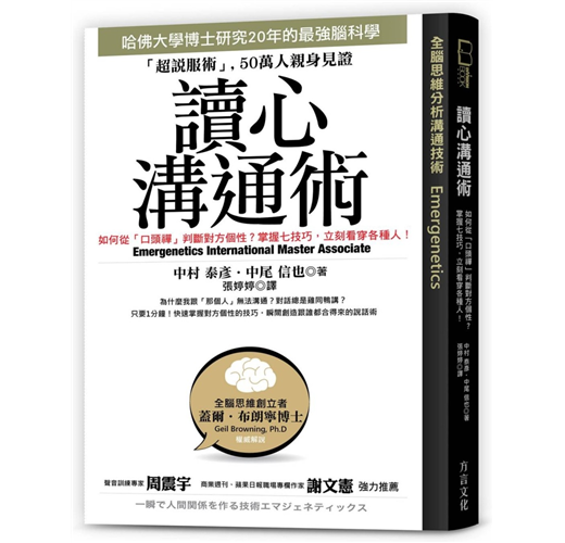 《讀心溝通術》是哈佛大學博士蓋爾˙布朗寧歷經20年權威博士研究,獨創出「全腦思維分析系統」的溝通技術,詳實說明人們各種不同個性,並且教會你如何透過「口頭禪」、「發問技巧」和「行為觀察」的技巧來快速看穿各種人,以及無需改變自己就能和任何人都合得來的方法,無論跟誰都能一路順暢溝通,並且建立好交情。