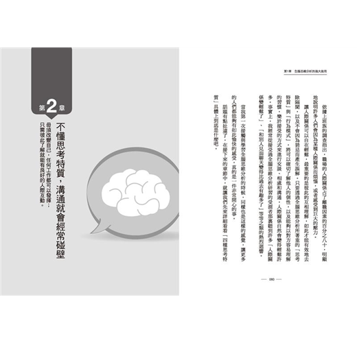 別以為「只要講清楚,別人自然會懂、會理解!」,這絕對是個錯誤觀點。溝通順暢的關鍵就在於了解對方的個性與自己特質,知道對方在乎什麼、不喜歡哪些,然後藉由自己的長處強項,選用對方願意聽、也聽得懂的方式來彼此溝通,才不會撞牆碰壁,更能越談交情越好,越聊越開心。