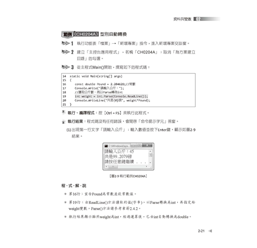 以主控台應用程式為主,包括了變數和常數,基本資料型別的取用,流程控制的條件選擇和迴圈。