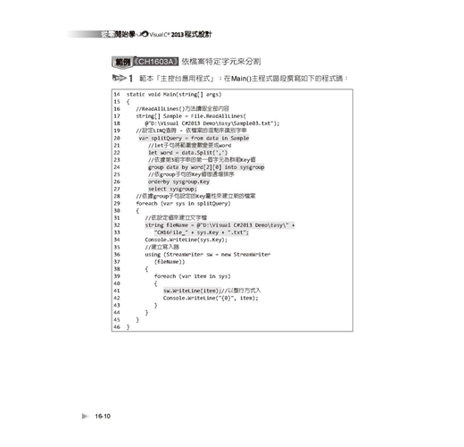 學習一個程式語言,基本功夫不外乎是程式語言結構和流程基本控制。除了這些之外.NET Framework是未來軟體開發的共同平台,而透過Visual Studio 2013開發環境,更能直接運用.NET Framewrok的豐富的類別庫。所以無論是使用那一種語言,皆能應用共通語言執行環境,發展出跨平台的應用程式。本書非常適合對Visual C#語言有興趣,又想要對.NET Framework類別庫有更多認識的讀者,透過本書可達到通盤性認識,全書重要內容如下: