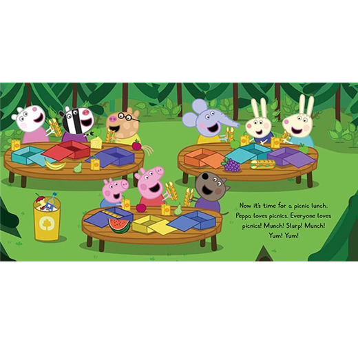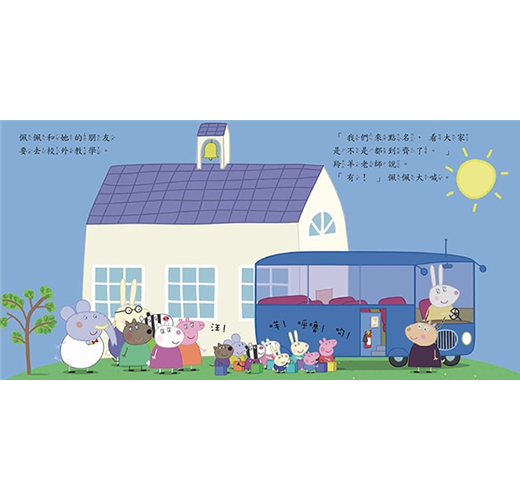 今天佩佩和同學們一起去校外教學,大家坐著校車到山上探險,他們會在山上發現什麼稀奇有趣的事呢?