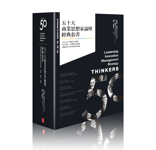 創辦於2001年,是兩年一度的國際性評選,被譽為「商業思想界的奧斯卡」,曾經獲獎人物包括破壞性創新大師克里斯汀生、《藍海策略》作者金偉燦與莫伯尼、《從A到A+》作者柯林斯、管理大師大前研一、聯想集團創辦人柳傳志等,每屆評選活動都受到國外頂尖財經媒體爭相報導。這些大師除在其專業領域享有盛譽,並著作等身。本系列書籍是國內唯一Thinkers50正式授權版本。