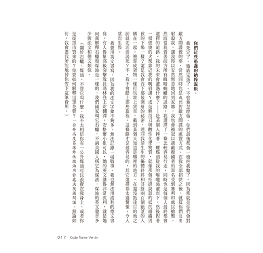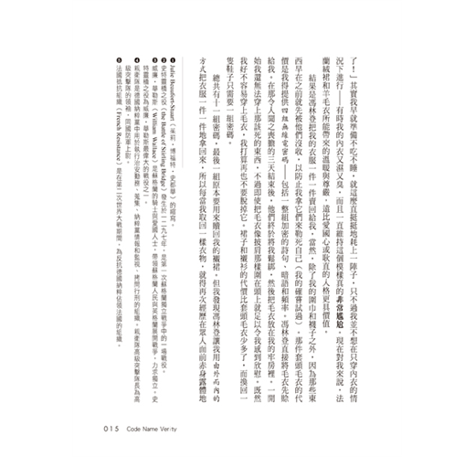 伊莉莎白.溫的文字在敘說戰爭下的恐怖和真摯動人的英雄事蹟之間取得完美平衡,呈現出細節考證嚴謹且經作者妙筆撰寫而成的一場驚心動魄的冒險故事。──《出版人周刊》,星號書評
