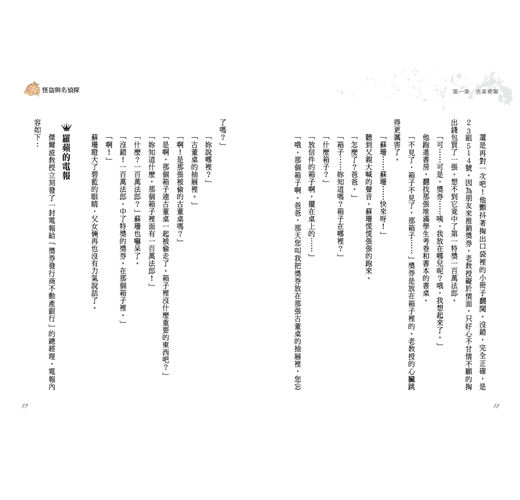 亞森‧羅蘋是盜賊,也是紳士;風流倜儻卻不輕易被情感束縛;從不運用武器,卻能完成一樁又一樁的驚奇冒險;既能體貼弱小,又能嚴懲權貴;能劫富濟貧,也能豐厚自己的財力;是個神祕又令人嚮往的傳奇人物。全新的插圖版型、文字敘述,賦予這些傳奇故事更飛揚的風貌。