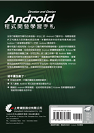 全書從如何使用主要的組件來建立一個直覺且外觀好看的界面開始,接著說明如何取得資料並且使用清單來顯示資料,最後探討如何使用服務—重要而且經常未充份利用的Android平台元件。另外在說明如何為Android生態系撰寫應用程式前,也會探討如何處理媒體及定位服務。