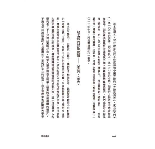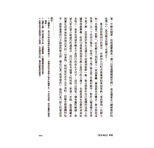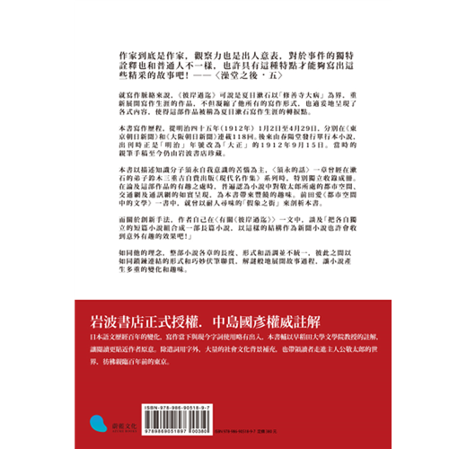 日本語文歷經百年的變化,寫作當下與現今字詞使用略有出入,本書輔以早稻田大學文學院教授的註解,讓閱讀更貼近作者原意。除遣詞用字外,大量的社會文化背景補充,也帶領讀者走進主人公敬太郎的世界,彷彿親臨百年前的東京。