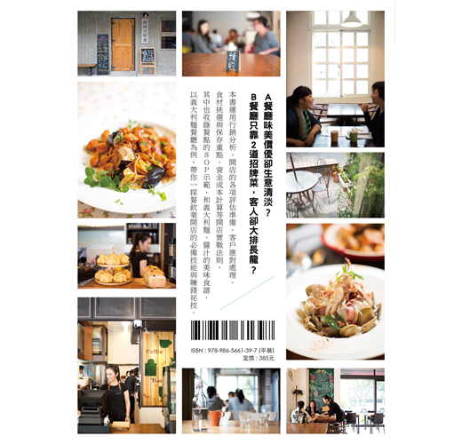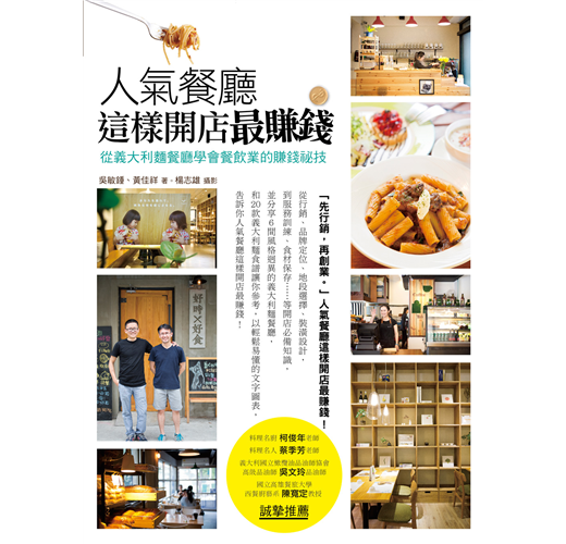 從品牌定位、地段選擇、裝潢設計,到服務訓練、食材保存……等開店必備知識,並分享6間風格迥異的義大利麵餐廳,領教達人前輩如何在這塊領域披荊斬棘,闖出一片天;另外收錄餐點的SOP示範,和義大利麵、醬汁的美味食譜,以義大利麵餐廳為例,搭配輕鬆易懂的文字圖表,帶你一探餐飲業開店的必備技能與賺錢祕技!