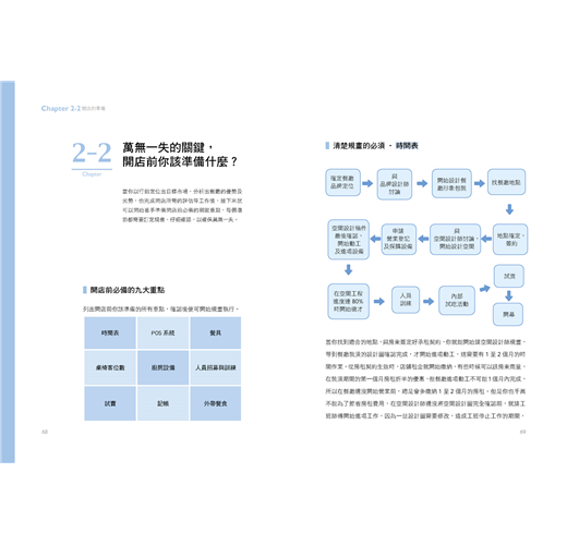 關於店面地點選擇、資金準備,以及動線規畫、人員招募等環節重點。