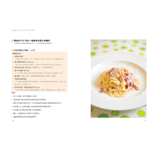 運用SOP、醬汁和義大利麵食譜實際演練,也可當作開店時設計菜單的參考。