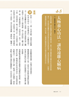 在預防作法的實踐上,不只提供對症的養心食譜,更引薦連美國第一名醫院的梅約醫學中心和哈佛大學醫學院也推薦的養心復健項目「太極養心操」,既可作為一般的保健運動,也是心臟血管病人的最佳養心復健治療。