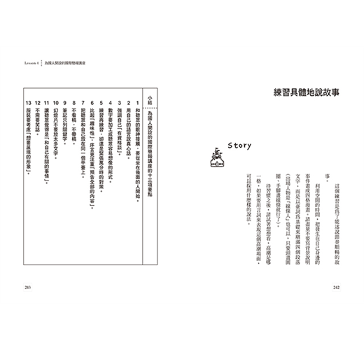 原則一:一開始就提出簡潔扼要的定義/原則二:「知所取捨」,是細節說明的關鍵/原則三:以倒金字塔型鋪陳細節說明/英美式的「把自己推到臺前的表達方法」/英語連「形容詞」都有一定的排列順序/描述東京晴空塔