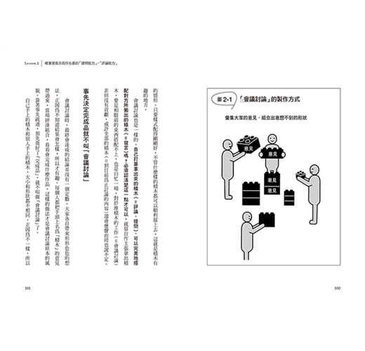 會議討論=大家一起堆積木的工作/事先決定完成品就不叫「會議討論」/自己應該扮演什麼角色?/充分理解會議討論的內容