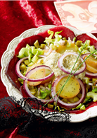 在十九世紀初葉,一個頗具爭議性的人物,奧古斯特.馮.柯茲卜──這是個不太確切的名字——既是間諜、外交官,同時也是美食家,他在《巴黎憶往》(Souvenirs de Paris)這本書裡,描繪巴黎人烹飪的風俗習慣:「在將近中午一點的時候,人們會在一張紅心木餐桌上擺滿好幾種冷盤肉類和不同的酒。關於熱主食的菜,人們充其量能吃的是烤乳鴿、韃靼生雞肉、小塊的湯汁肉糜、腰子和布丹腸。相反地,冷食方面,餐桌上有沙拉、肉類冷盤、野禽肉凍和火腿肉凍。至於前菜,則有著名的康卡樂岩礁餐廳的生蠔。」