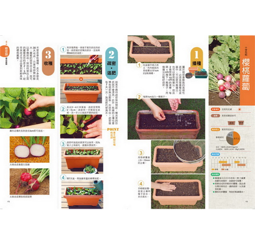 本書規劃每一種蔬菜的栽培時間表,了解從播種到收成、適合種植的月份跟所需時程,讓你輕鬆種植快樂收穫。