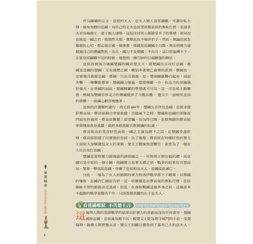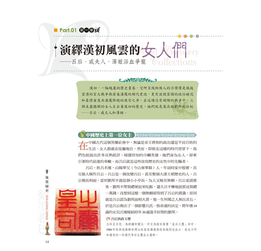 本書內容以歷史事實為主要依據,再添加些許傳著於世的野史內容,降低歷史的沉重,增加閱讀上的趣味!