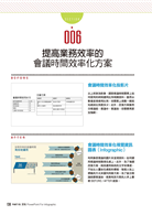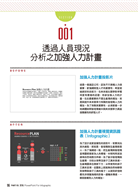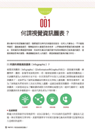 本書內容共分為三篇,第一篇闡述何謂視覺資訊圖表(infographic)與基本的製作過程;第二篇以分解步驟教讀者運用PowerPoint裡的功能,輕鬆製作豐富的圖表;第三篇則提供28個豐富案例,示範如何製作出各種主題與資訊的圖表。讀者若跟著本書範例加以練習,相信在不久的未來,在職場與學習的過程中更能提出比別人更豐富有力的提案與簡報!