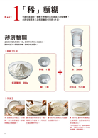 本書所使用的麵粉皆為低筋麵粉,依照加入水量的多寡,可製作出「稀」麵糊、「稠」麵糊、「Q」麵團三種不同稠度的麵體,依此變化出各種不同風味的料理。