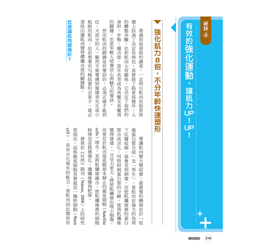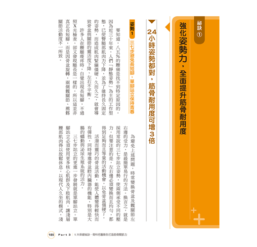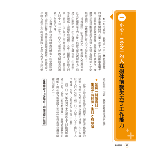 每個人在成長過程中均有受過筋骨痠痛的困擾,從青少年到老人,隨著人年紀越大,筋骨痠痛的折磨越形嚴重。如何避免,且老而不病的活得健康又長壽?唯一祕訣就是顧好你的筋骨關節,由運動開始。而對的「運動」扮演著重要的關鍵角色,可達到預防的效果,因肌力的提升或下降,將左右「健康長壽」的關鍵。