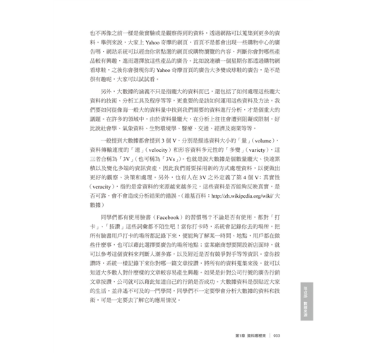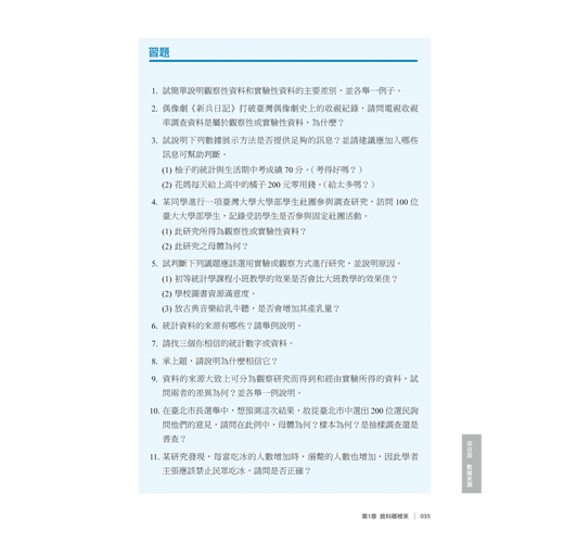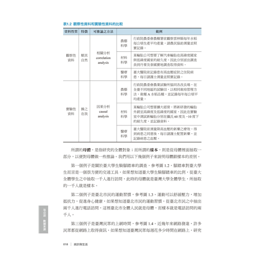 有別於一般翻譯自國外教科書書中所使用的例子、數據與習題均為國外的經驗,本書改以臺灣及華人地區的實際問題、數據與例證為基礎,貼近學生的生活世界,讓學生可以輕鬆有效率地學習統計。