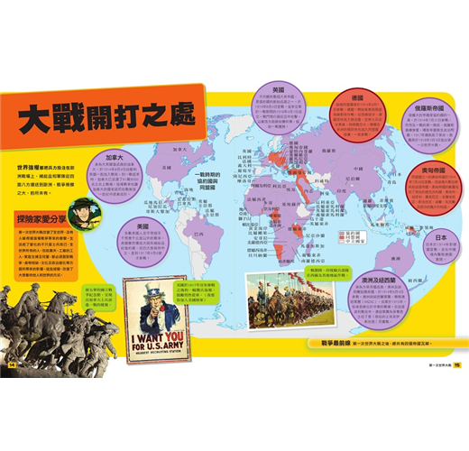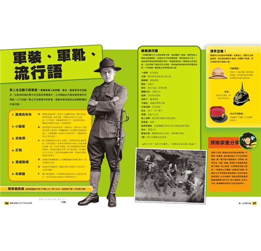 書中穿插「探險家愛分享」專欄,收錄軍事史學家愛德華.蘭吉爾對於一次世界大戰的研究與心得,以及照片背後的故事。