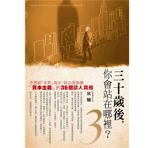 ★《30歲後你會站在哪裡?》第一集是「窮忙族的職場急救手冊」,第二集是「上班族的致富生涯藍圖」,第三集則是主攻「揭露資本市場的潛規則」,讓你優游在資本主義的大海,永遠都「有魚可吃」。