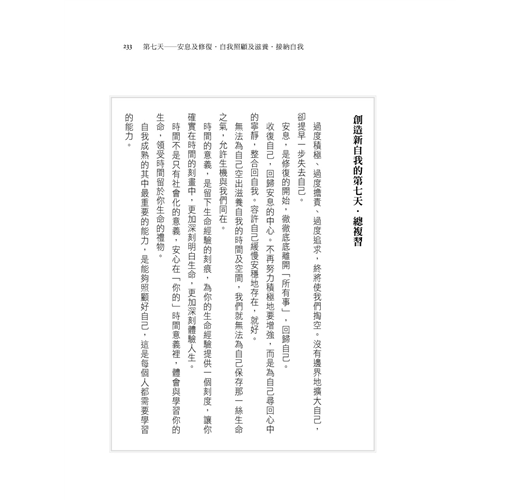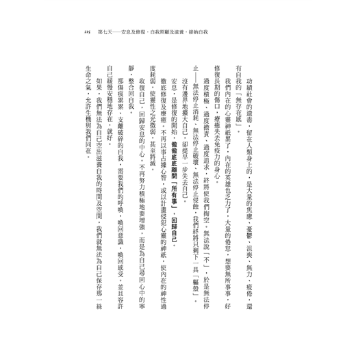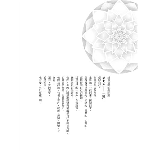 請以完整的七天,與自己的生命同行為伍,創造自己心世界的新秩序、新樣貌、新生態。