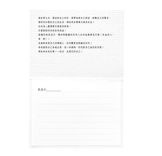 我希望協助你,藉由七天的週期練習更認識自己,接納自己,