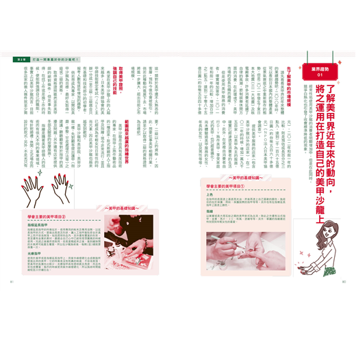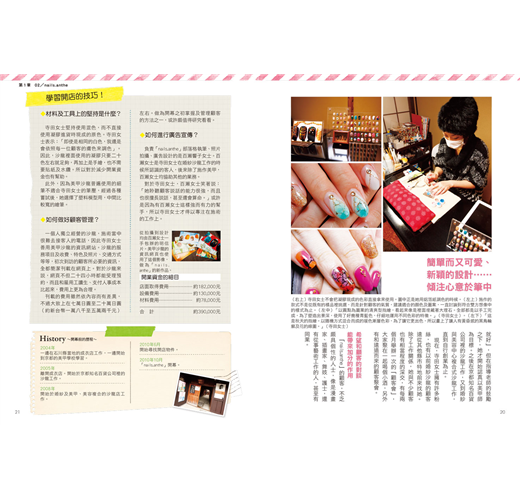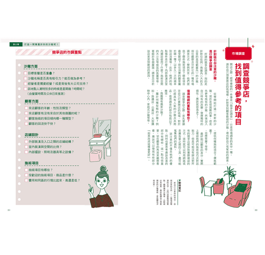 本書完整採訪11間人氣沙龍,詢問他們的開店心路歷程,從內部擺設、室內裝飾的巧思,到接待顧客及施術項目的特色等等,徹底瞭解他們是用什麼方法打造出一間讓顧客想再次登門拜訪的高人氣店家。