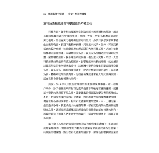 一再爆發的食安問題,人心惶惶,究竟該如何解決?經濟開發與環境保護,如何取捨?如何兼顧?高科技系統風險與科學證據的不確定性該怎麼辦?