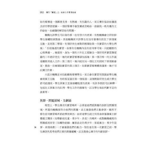 這篇介紹式的章節,提供歷史發展與現況等背景,以了解社會工作課程對實習指導的要求。也會解答有關學生的準備、督導,以及在更廣