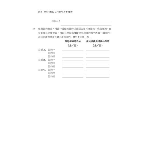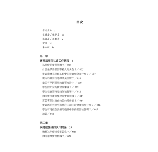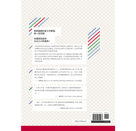 「社會工作是一門實作與實證的科學,本書為社工實習與實務提供一個完整的基礎,是開始要展開實習或是擔任實習督導的夥伴的最佳指引。」