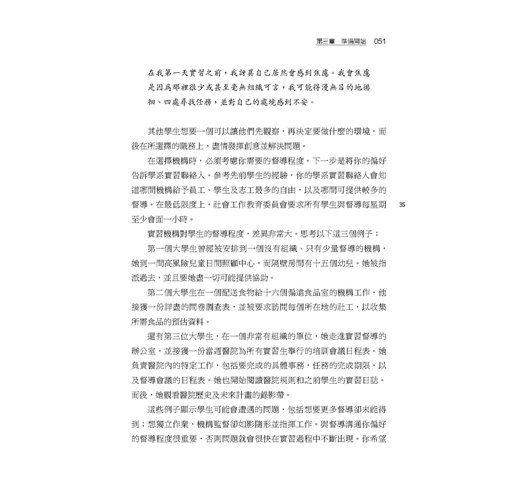 「這是一本有用的實習求生手冊。雖然是依美國經驗撰寫。但是,諸多提醒都可舉一反三,運用在臺灣的實務現場。」