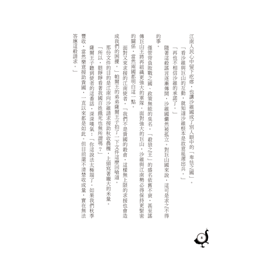 最後江南使者還補上幾句話:「歸根究柢,還是因為貴國當初沒有履行承諾,立即派兵支援。到現在還有上萬民眾無家可歸,失去至親,孩子饑餓哭泣,老人家被迫夜宿荒地,希望你們能瞭解我們承受的痛苦。」