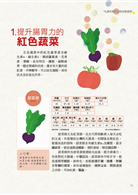 本書將日常生活中重要的蔬果用顏色分為五大類,分別富涵五類不同的營養成分組合,有效掌握關鍵食物營養素,可以針對自己或家人較缺乏的營養,特別加強攝取。