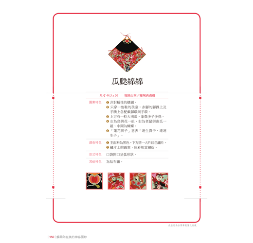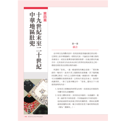 在此單元特別感謝台灣華歌爾,提供寶貴的文字內容與影像紀錄,讓論述臺灣內衣發展時有更準確與豐富的陳述,而能言之有物。至於在肚兜文物部分,除確立肚兜的定義之外,也真實收錄了150件實際的文物(絕大多數都是由台灣華歌爾所珍藏)。這些珍品讓本書的豐富度大大的提升,其中在針對每一件肚兜的分析時,也同時明確它的地區(這是過往一般肚兜文物介紹中最欠缺的),相信這對肚兜的研究是很有助益的。