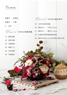 白色顏料有別於傳統指甲花的深沈色澤,可作出有如蕾絲披肩的效果,繪製於身體,浪漫展現新人們喜愛的夢幻甜美風格,在繪好的圖騰上灑上金粉,或是貼鑽,都能畫龍點睛地作出更加完美的裝飾效果;曉薇老師在本書中更發揮她天馬行空的創意點子,除了在新娘身體彩繪作畫之外,也將HENNA圖騰與婚禮小物、賀卡、甜點等可愛的物品結合,讓新人們的婚禮布置有了更不一樣、更具獨特風格的呈現方式,也使HENNA手繪展現更多元的創意樣貌。