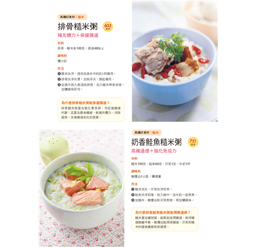 排骨糙米粥中富含維生素B群,可促進腸道代謝,且富含膳食纖維,能補充體力,消除疲勞,改善腸道老化的現象。