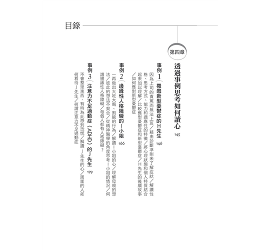三十多年來、天天都在解讀複雜人心的精神科醫師藤本修,將和你分享他在解讀人心時所運用的基本技巧和知識。他透過憂鬱症、亞斯伯格症、注意力不足過動症(ADHD)、及各類人格障礙等事例,具體示範解讀人心的方式。並且,他更從自己豐富的臨床實務經驗中,精煉出「讓你擅長讀心的十大原則」。