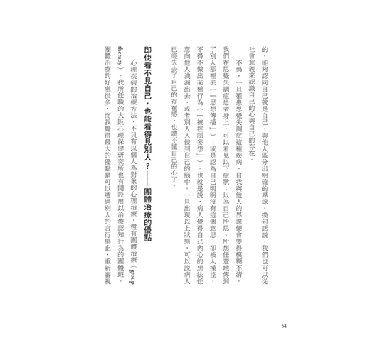 絕不能斷定某種心理疾病的患者,一定會有什麼想法。這種先入為主的錯誤觀念,會導致對人心的誤解。正確的邏輯是:不是○○疾病造成人們有某些心理特徵,而是因為人們表現出某些症狀和狀態,所以才被判斷得了○○疾病。