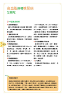 三高之間互為因果,若有合併其他疾病,在飲食原則及需重點補充的營養素即隨之不同,專家提供處理食材的小竅門、對於三高病友的生活小提醒等等,讓三高病友能把握原則落實於日常生活中,並能對症選擇適合自己的飲食方案。