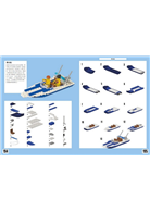 然後,我們暫時離開陸地,在第三章駛入汪洋大海,呈現各種航行在水面上的交通工具。內容有:傳統的拖網漁船、航行七大洋的貨櫃輪,還有許多歷史船隻,例如最早的「鐵甲艦」,以及連結英國與法國的大型氣墊船。如果你想要來點輕鬆的,也可以試試看用樂高積木做出划水板喔。
