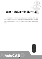 全書內容貫穿應用所需的繪圖技巧,包含各種繪製圖形的指令、精確繪圖、編輯圖形、尺寸標註、圖塊與屬性的應用、各視圖的繪製、3D圖形繪製、圖紙管理、環境設定以及綜合應用等,讓讀者透過實務操作掌握繪圖的應用技巧,並在實際工作與生活中熟練運用AutoCAD。